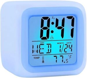 Relógio despertador digital, Relógio LED para quarto, Relógio eletrônico de mesa com visor de temperatura, brilho ajustável, controle de voz, visor 12/24H para casa, dormitório, escritório