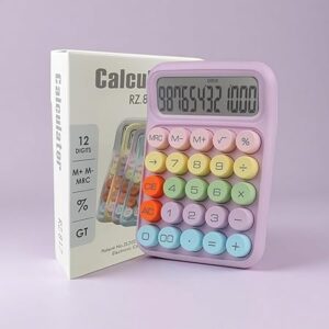 alculadora de doces coloridos, botão redondo grande com visor LCD grande de 12 dígitos mecânica, fácil de pressionar, para escola, escritório, negócios, casa, sono automático, roxo