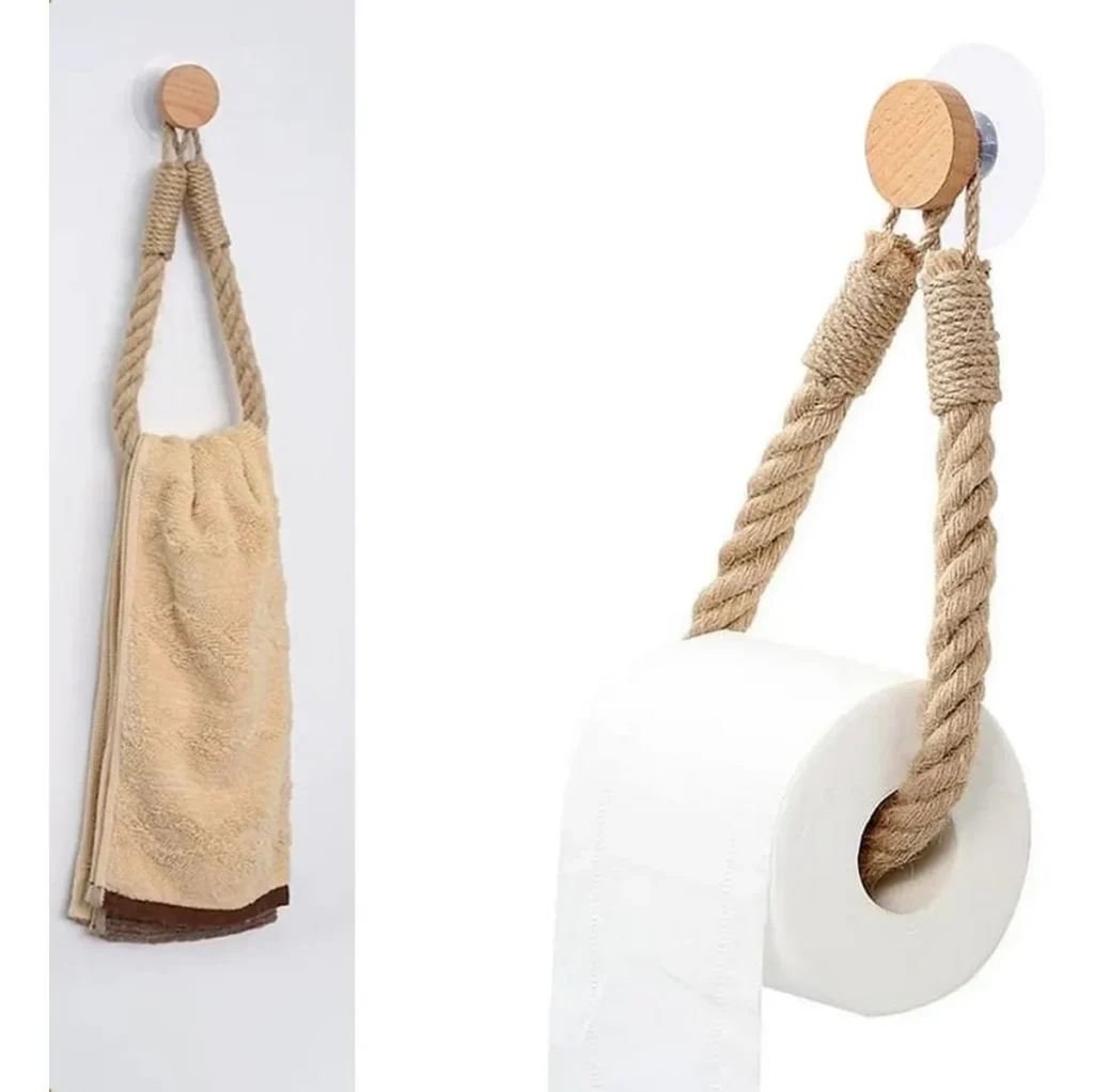 2x Porta Papel Higiênico Toalha De Rosto Rústico De Corda Cor Canhâmo