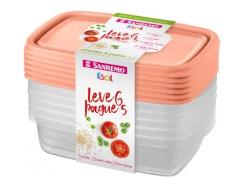 6 Pote Plástico Retangular 785ml Microondas Freezer Bpa Free Cor Salmão