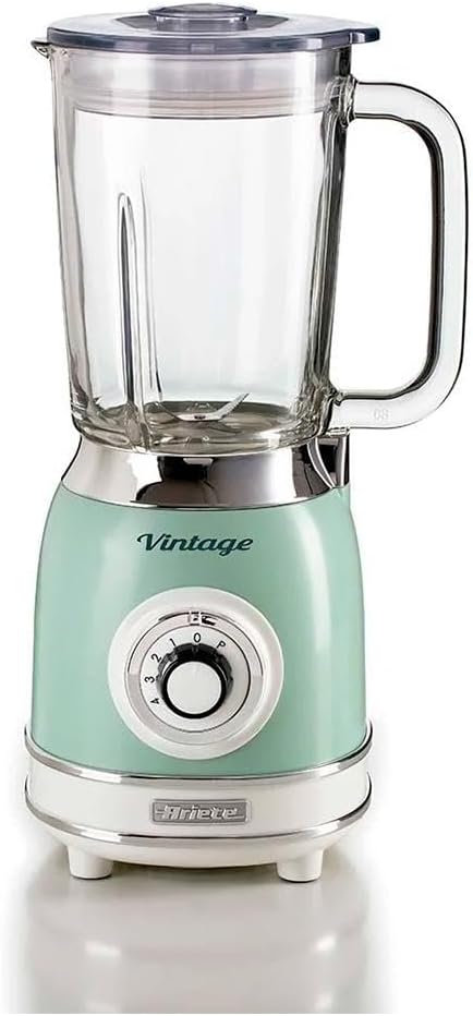 Ariete 583, Liquidificador Vintage Verde, Copo de Vidro 1.5 L, 4 Lâminas de Aço Inoxidável, 4 Velocidades + Pulso, 1000 Wats – 127V