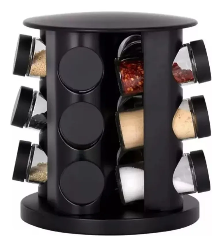 Belakaza Porta Condimentos Vidro E Tampa Giratório Com 9 Potes Preto