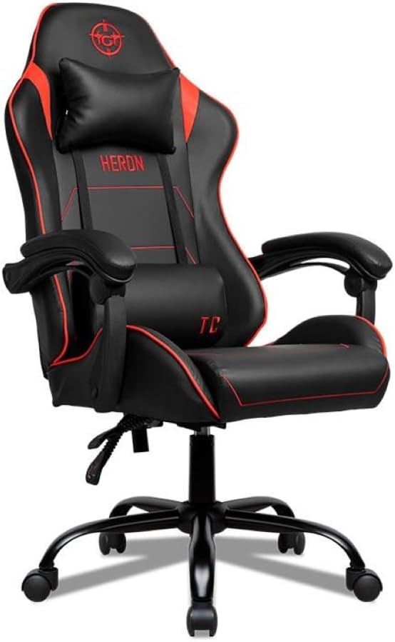 Cadeira Gamer TGT Heron TC | Espuma Moldada | Almofadas para Lombar e Pescoço | Suporta até 120kg | Ajuste de Inclinação | Braço Fixo | Preto e Vermelho | TGT-HRTC-BR02