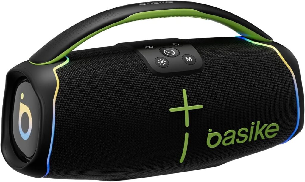 Caixa de Som Bluetooth Basike H61, 60W Potência, IPX6, Alto-Falante Hi-Fi, Luz RGB Surround, Portátil, Resistente à Água (Preto)