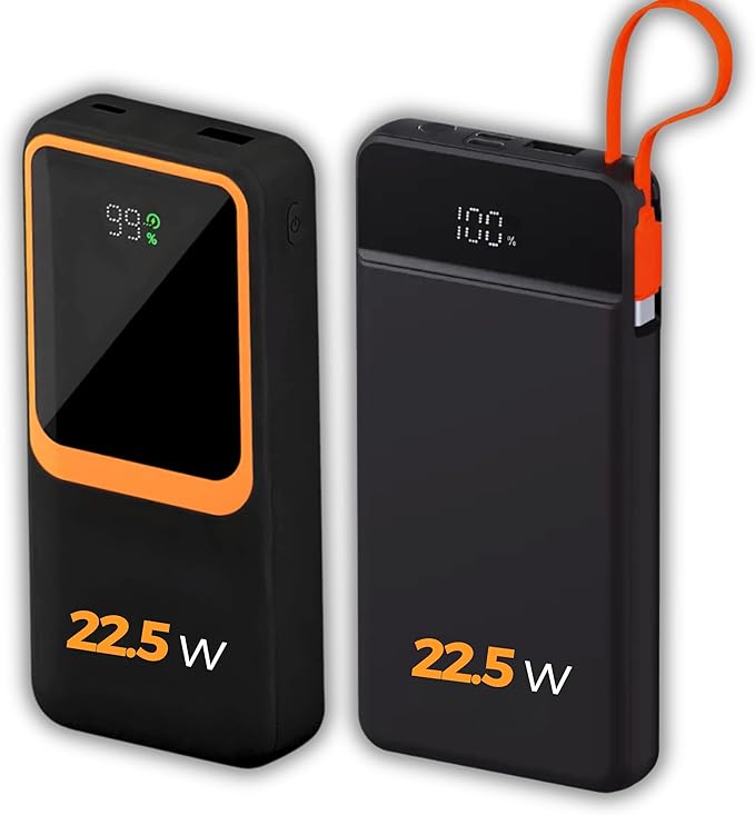 Carregador Portátil (Power Bank) 20000Mah Turbo 22.5w Carregamento Ultra Rápido PD Visor Led com 2 Saídas Compatível com Android e IOS (Preto)