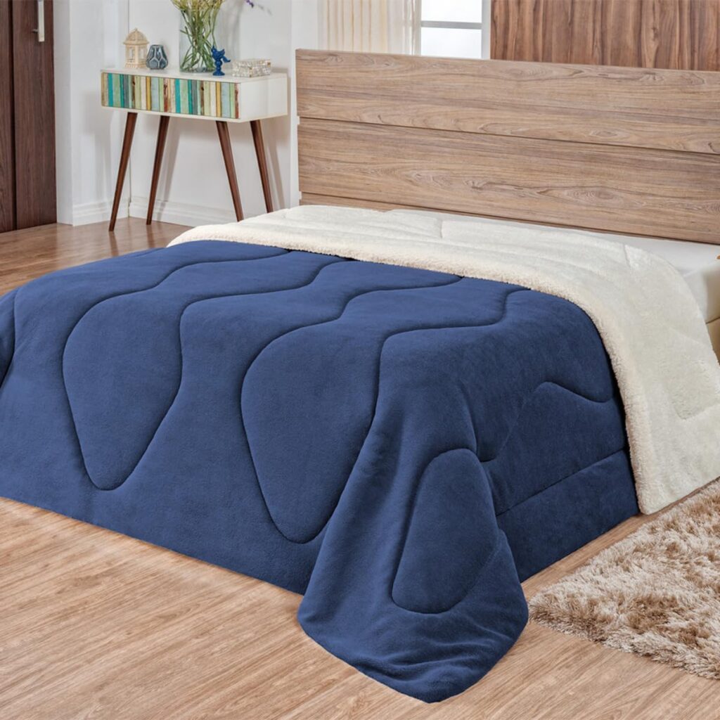 Coberdrom Casal Queen, Edredom Felpudo Dupla Face Sherpa, Cobertor Grosso Manta Felpuda, Lavável à Máquina (Azul Marinho)