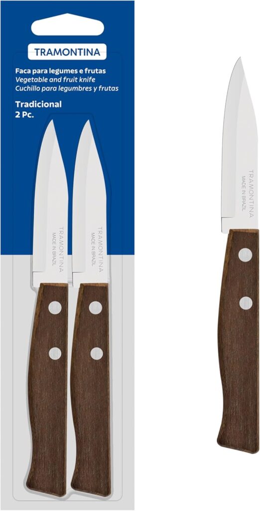 Conjunto De Facas Para Legumes E Frutas Tramontina Tradicional Com Lâminas Em Aço Inox E Cabos De Madeira Natural 02 Peças