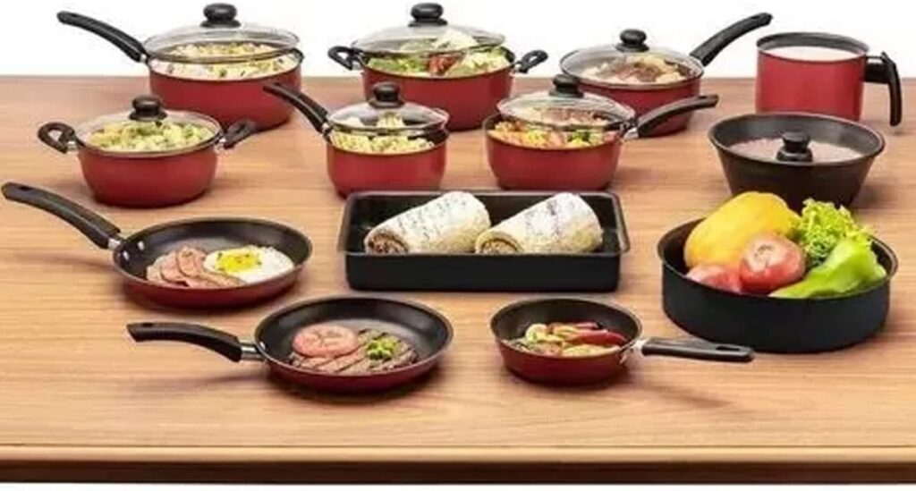 Conjunto de panelas 13 peças antiadrente tampa de vidro (vermelho)