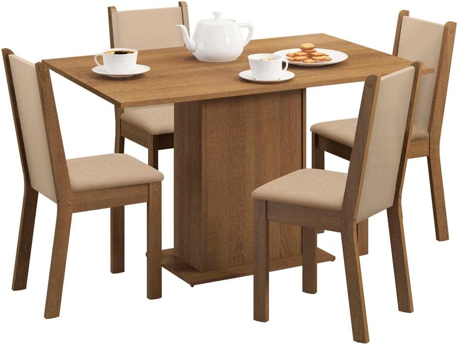 Conjunto Sala de Jantar Madesa Talita Mesa Tampo de Madeira com 4 Cadeiras – Rustic/Crema/Pérola
