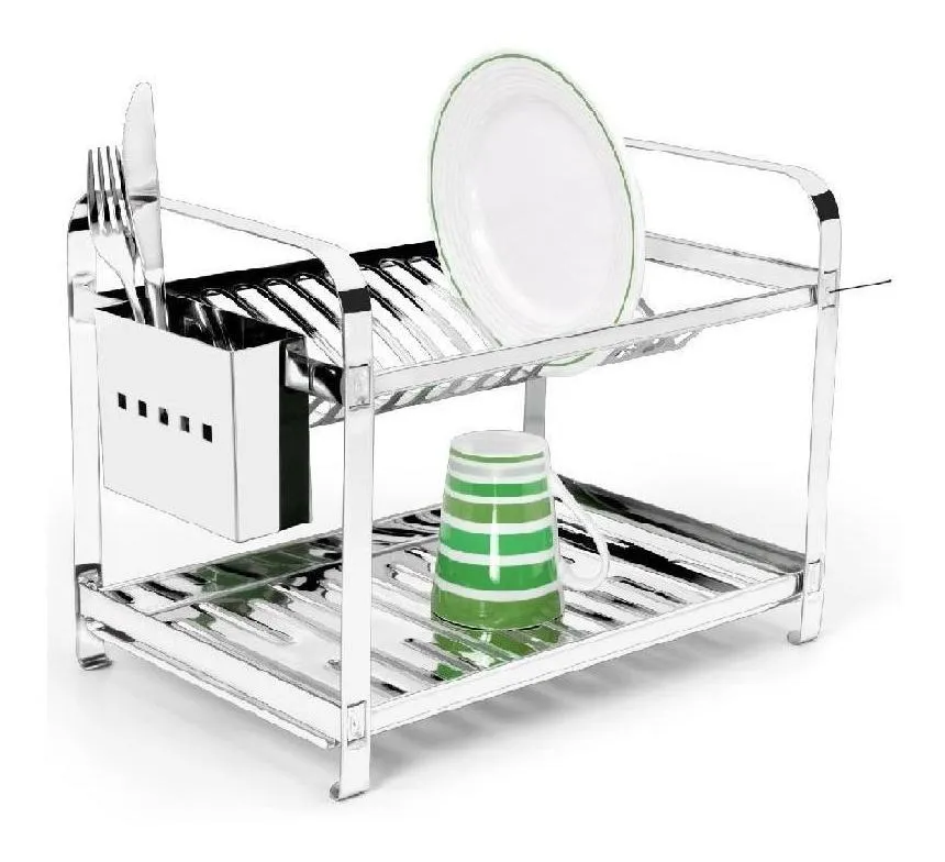 Escorredor 16 Pratos Em Aço Inox Com Porta Talheres Inox Mak