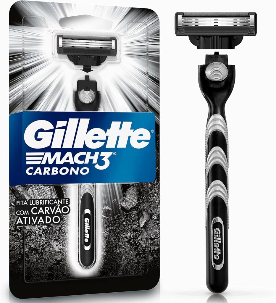 Gillette Mach3 Carbono Aparelho de barbear reutilizável com Carvão Ativado e Fita Lubrificante Melhorada 1 Ud