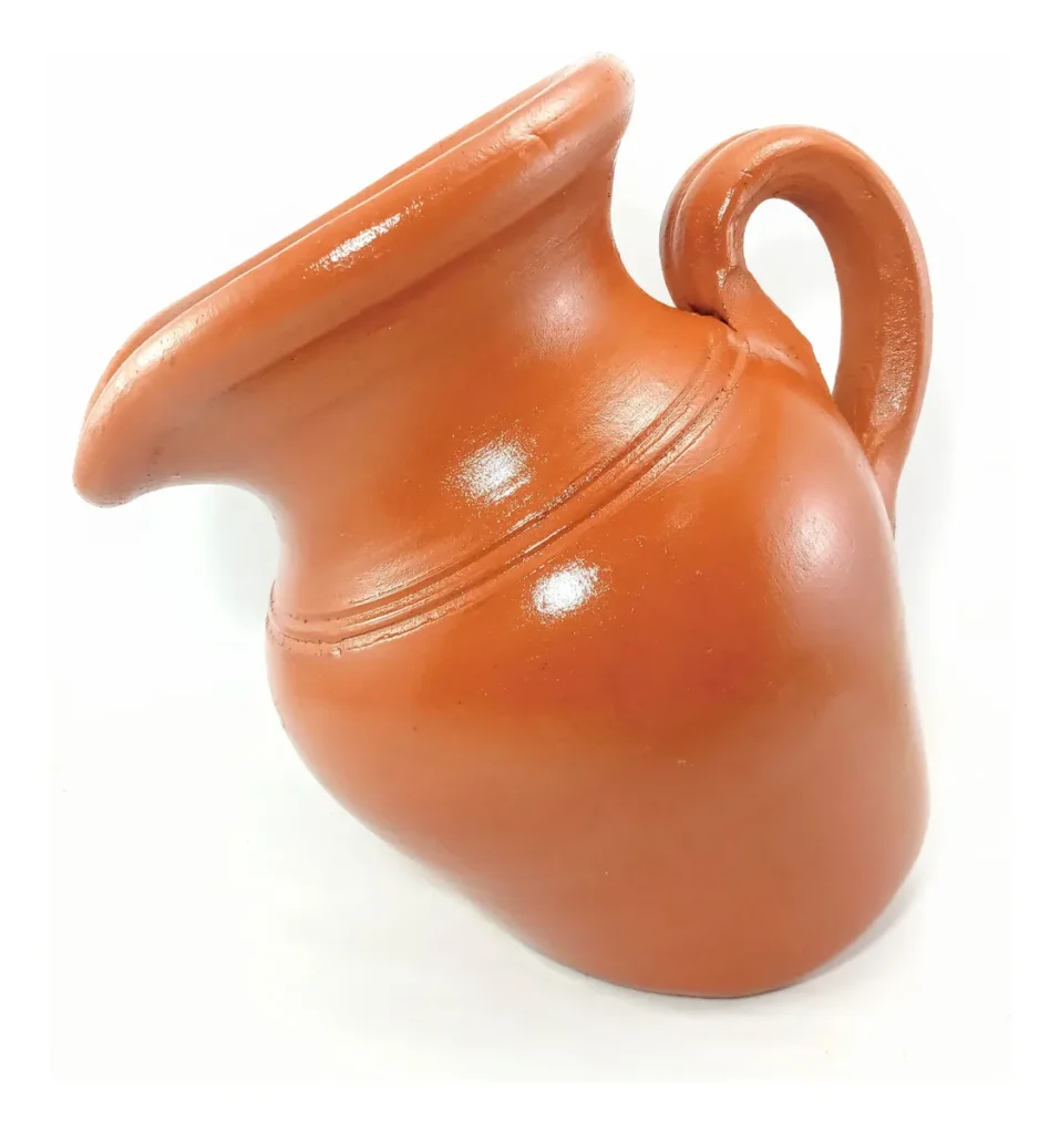 Jarro Vaso De Barro C/alça Inclinado Plantas Decorativo 22cm