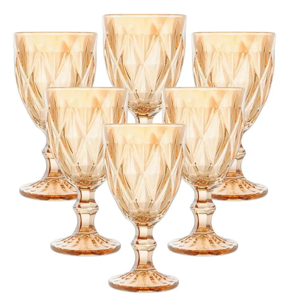 Jogo 6 Taça Diamante Copo Vidro Transparente 340ml Cor Âmbar