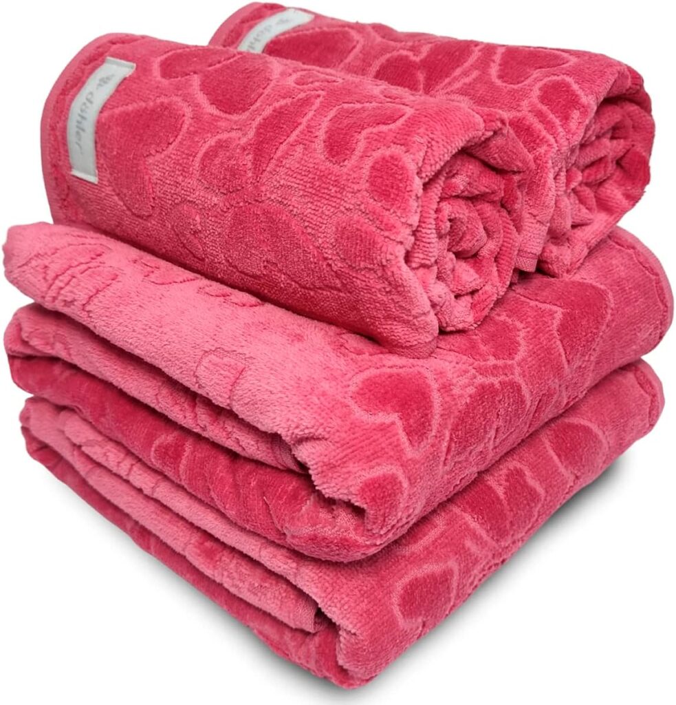 Jogo de Banho 4 Peças Romance Dohler Aveludada 100% Algodão Toalha Fio Penteado Coração Borboleta (Rosa 10366)