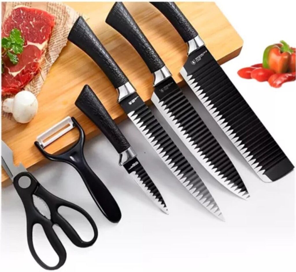 Jogo de Facas Profissional Kit 6 Peças Churrasco Cozinha Peças Aço Inox Super Afiadas Gourmet Premium