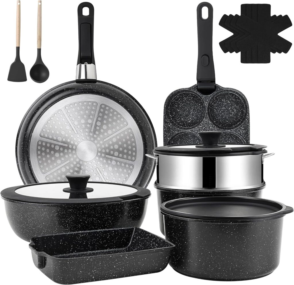 Jogo De Panelas 12 Peças, Conjunto De Panelas Antiaderentes Punho Destacável, Conjuntos De Panelas De Cozinha De Indução Antiaderente Com Alça Removível