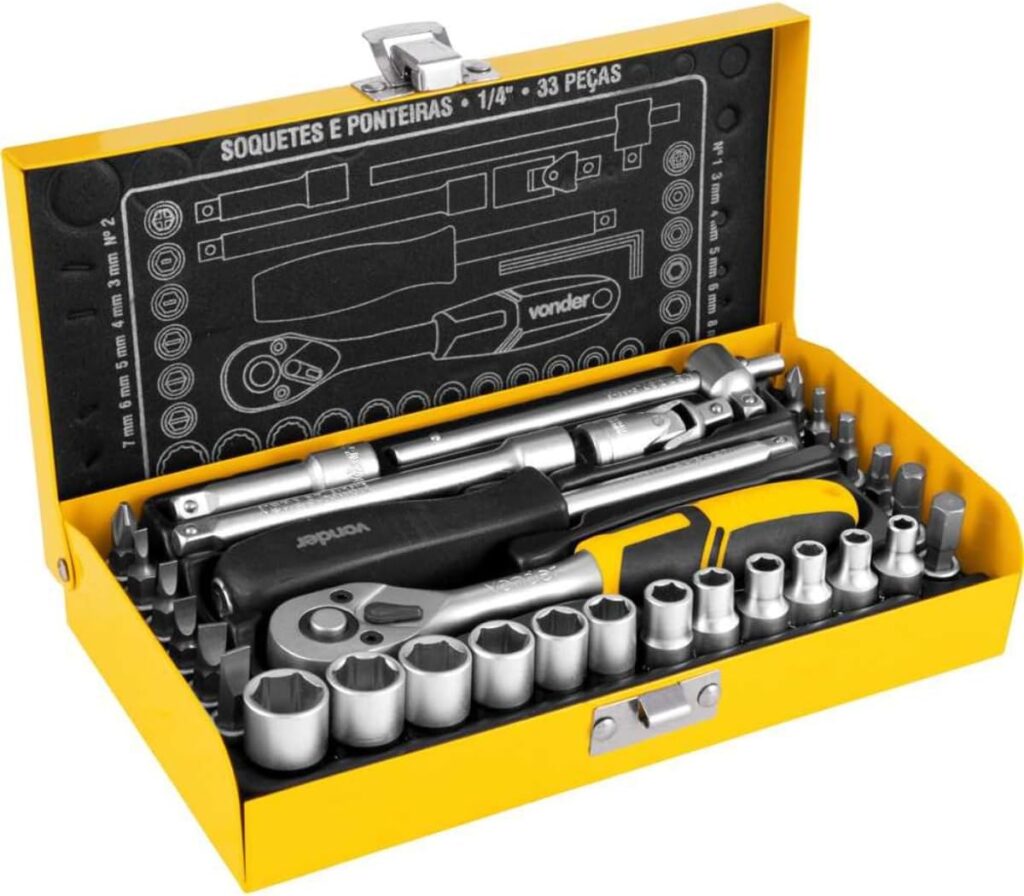 Jogo de Soquetes e Ponteiras, Encaixe de 1/4″, com 33 Peças, Vonder VDO773