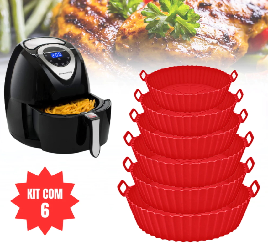 Kit 6 Forma de Silicone para Fritadeira Air Fryer com Alça Antiaderente Cozinha