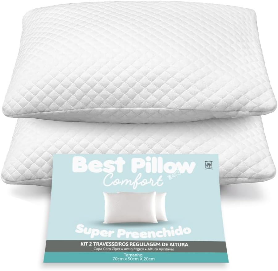 Kit com 02 Travesseiros Regulagem de Altura 70cm x 50cm percal 200 fios antialérgico fibra siliconada