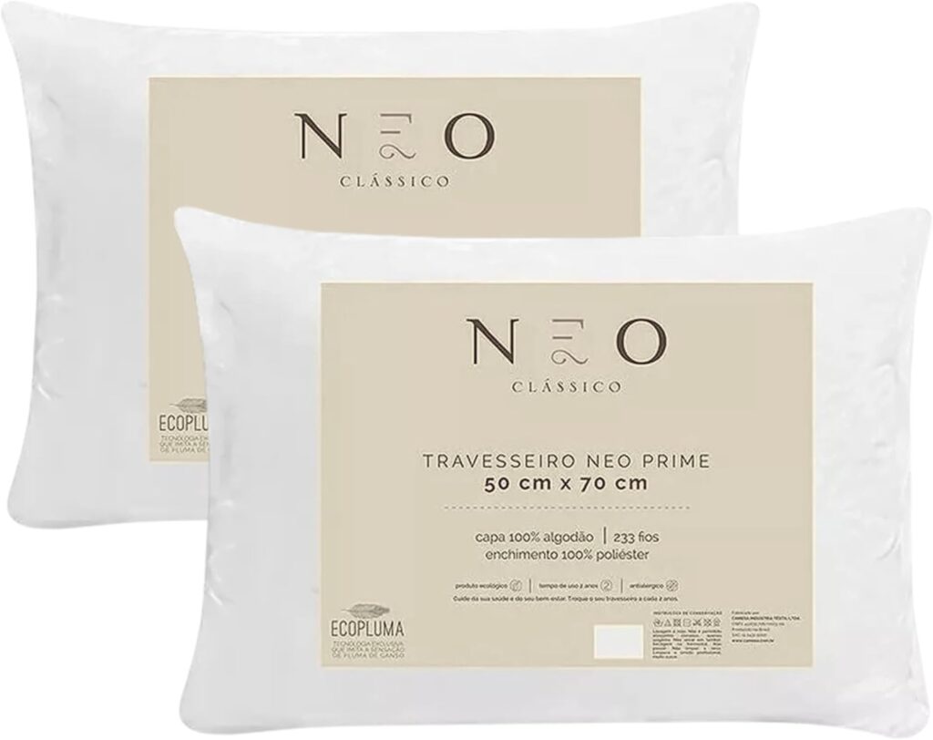 Kit com 2 Travesseiro Camesa by Gato Panda Neo Prime Ecoplum 233 Fios 50x70cm – Macio, Antialérgico, Antiácaro, Lavável, Percal 100% Algodão (2) (2, Macio, 50×70)