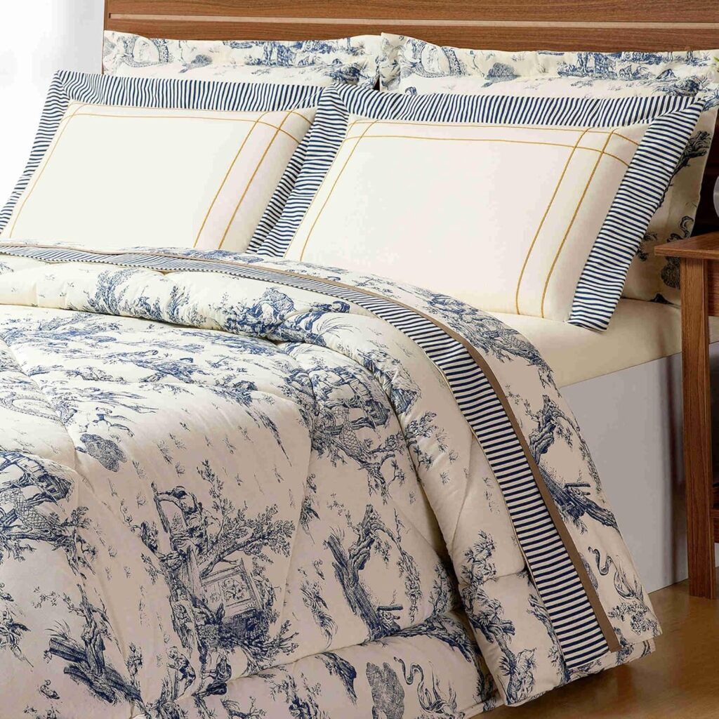 Kit Edredom + Jogo de Lençol Queen Size Percal 180 Fios Algodão 06 Peças Porcelana