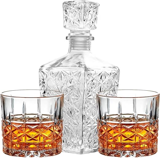 Kit Licoreira Garrafa De Vidro Para Whisky 2 Copos De Whisky Mini Bar Em Casa Decoração Uisque
