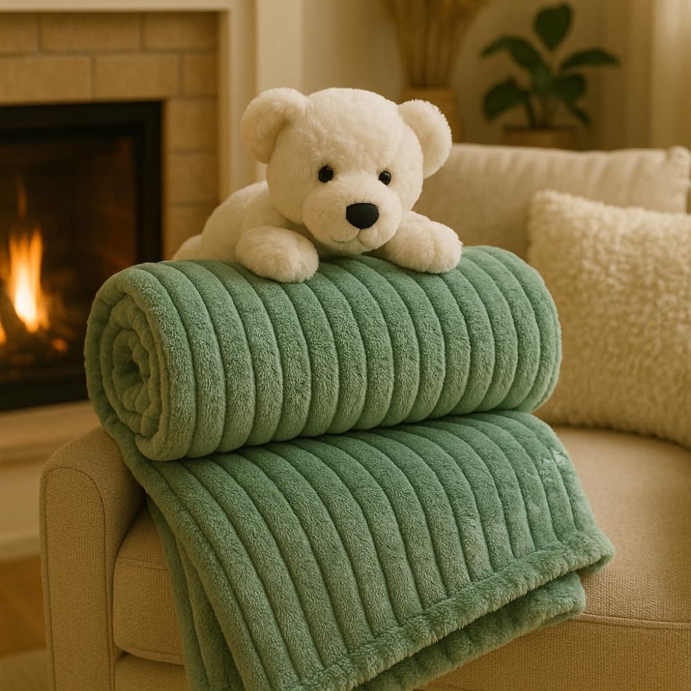 Manta de Microfibra Soft Plush para bebê 120cm x 105cm (Verde Canelado, 120×105)