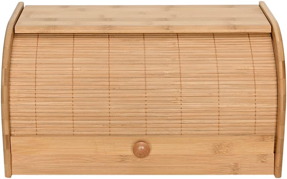 Mimo Style Porta Pães Com Tampa Retrátil Bambu Ecokitchen. Perfeita Para Armazenar Pães e Bolachas, Resistente, Durável e 100% Ecológica, Bege