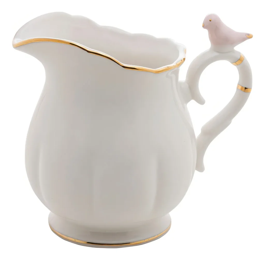 Mini Jarra Leiteira 230ml De Porcelana Branca Birds Wolff Cor Branco