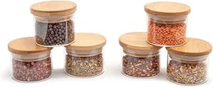 Oikos – Kit 6 Potes de Vidro 110ml com Tampa de Bambu Hermético Redondo para Tempero