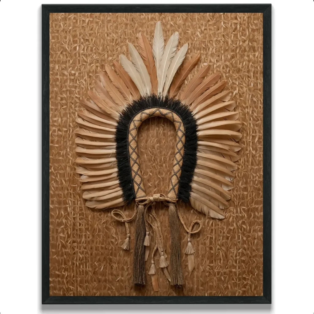 Quadro Cocar Indigena 21×30 Exclusivo Rustico Moldura Vidro