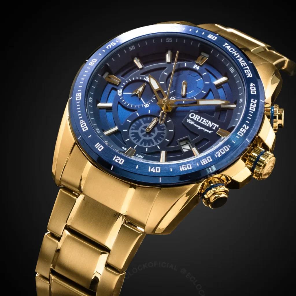 Relógio Orient Masculino Dourado A Prova D’água 100 Metros Cor do bisel Azul Cor do fundo Azu