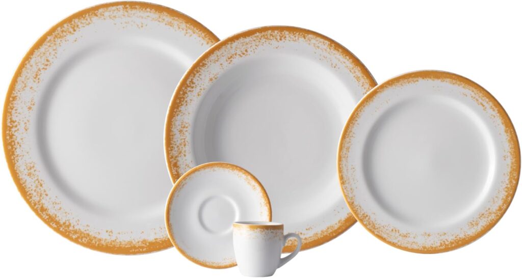 Serviço de Jantar e Café 30 Peças em Porcelana, Decoração Névoa Mostarda, Porcelana Schmidt