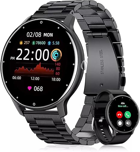 Smartwatch Relógio Inteligente Tela Full Touch 1.28″ Resistente à Água IP67 com Faz e Recebe Ligações, Modos Esportivos e Recebimento de Notificações(2 tiras) (preto)