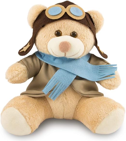 Urso Pelúcia Aviador 20cm Anti-alérgico Caramelo/Azul