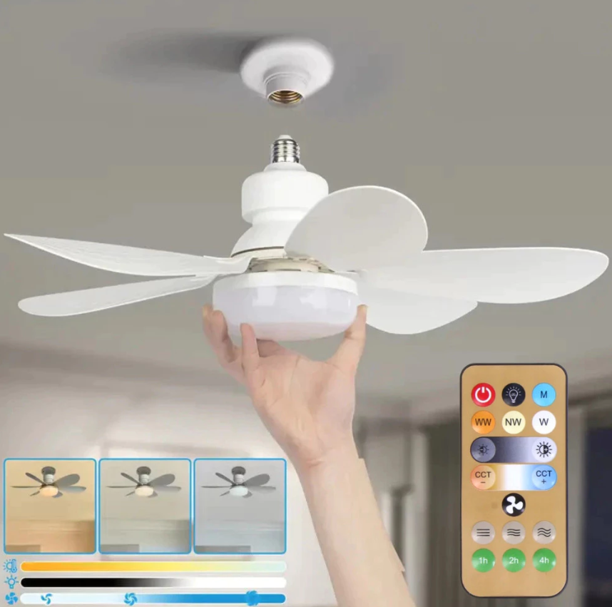 Ventilador de teto Com Luz para Pequenos Espaços (6 Hélices) Controle Remoto Bivolt LED 110V-220V